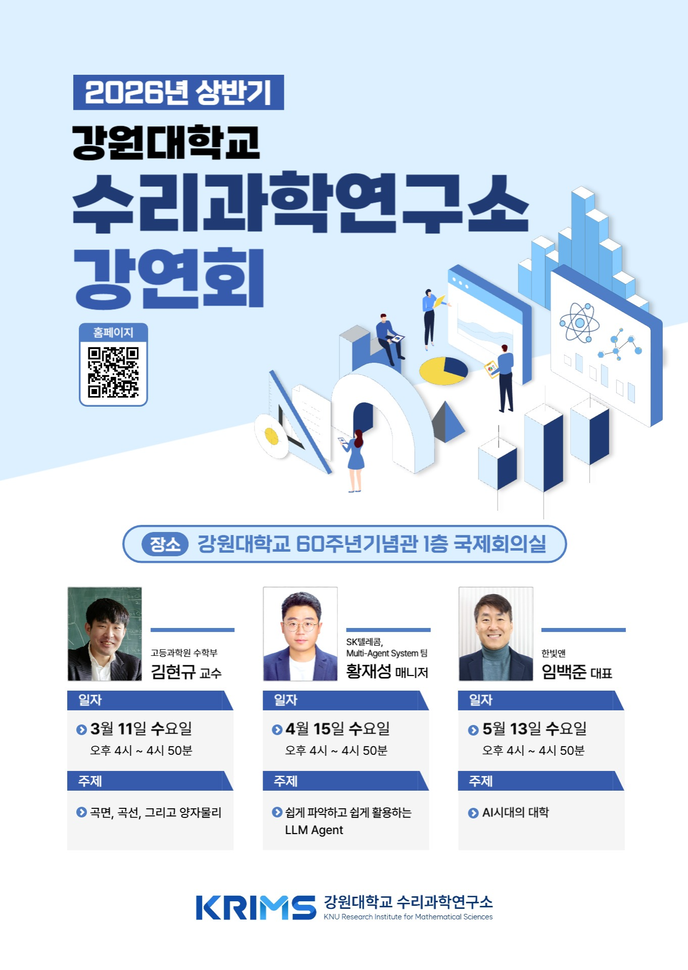 [수리과학연구소 강연회] 고등과학원 김현규 교수- 곡면, 곡선, 그리고 양자물리